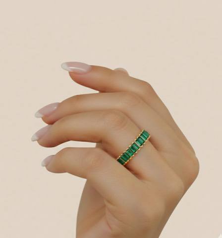 ست انگشتر و دستبند زمرد باگت یکی از شیک ترین و پر طرفدارترین انتخاب ها در دنیای زیورآلات زنانه است.